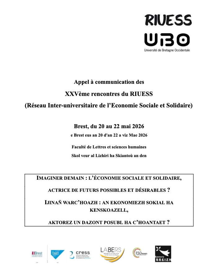 Avec le thème de cette édition  : « Imaginer demain : l’Économie Sociale et Solidaire, actrice de futurs possibles et désirables ? », les organisateurs invitent chercheur·ses, organisations de l’ESS et acteurs institutionnels à soumettre des contributions portant sur les capacités transformatrices de l’ESS dans un contexte de mutations sociales et écologiques. Les Rencontres du RIUESS constituent un espace de dialogue entre recherches, pratiques et perspectives d’innovation sociale.